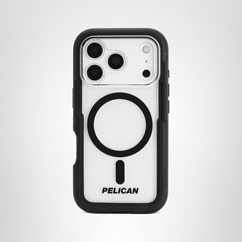 Pelican Voyager iPhone 17 Pro Case [Compatible with MagSafe] Rugged Phone Case w/ 24ft Military-Grade Drop Protection – Heavy Duty Phone Cover w/Belt Clip Holster for iPhone 17 Pro – Black/Clear
