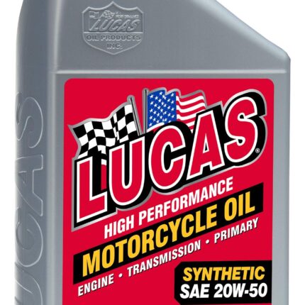 Lucas Oil 10702 High Performance Synthetic 20W-50 Motorcycle Oil – 1 Quart, Pack of 6