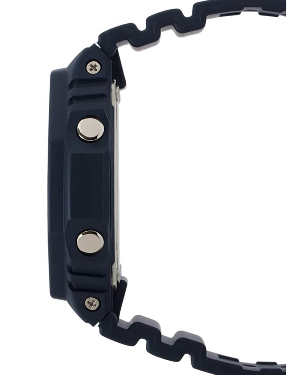 Built with a carbon fiber reinforced case, the GA-2100 is one of the thinnest G-Shock models at just 11.8mm. It features both analog and digital displays, 200M water resistance, and the shock resistance G-Shock is famous for. The all-black colorway keeps it versatile enough for any outfit or occasion.