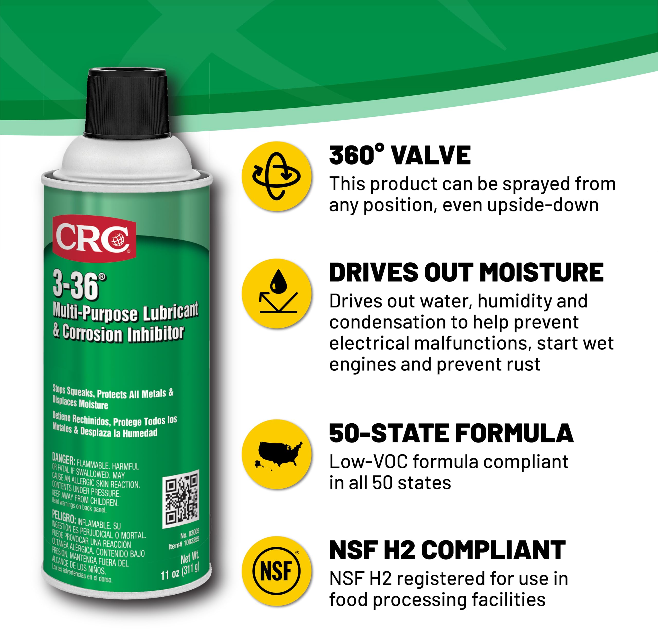 CRC 3-36 Multipurpose Lubricant & Corrosion Inhibitor 03005 – 11 Wt Oz., Corrosion Protectant Spray w/ Petroleum Base for Metal Equipment