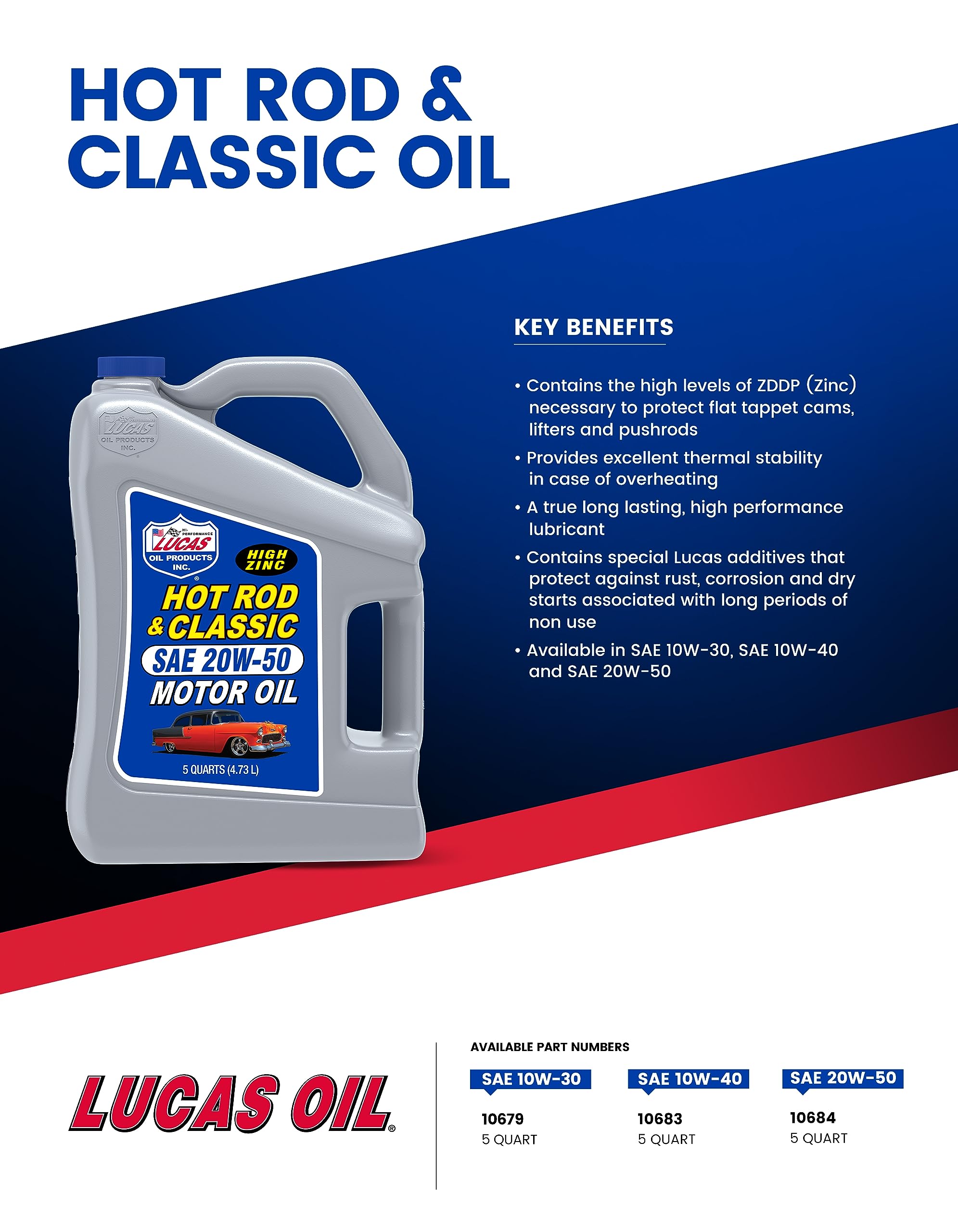 Lucas Oil 10683 Hot Rod & Classic Car SAE 10W-40 Motor Oil – 5 Quart