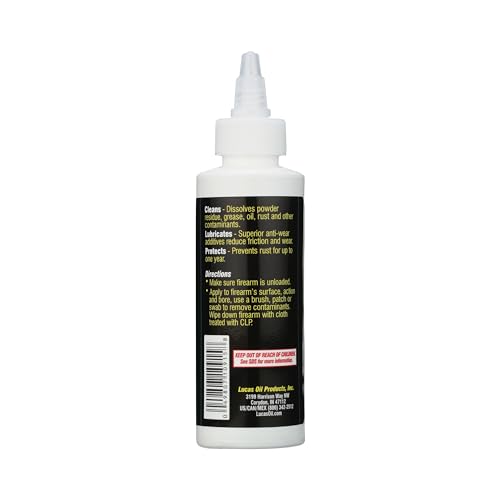 Details: Used and recommended by major firearms manufacturers, Lucas Oil Extreme Duty CLP is designed to clean, lubricate and protect your firearms in one simple step. It contains high grade additives that dissolve powder residue, old lubrication and other contaminates. It penetrates deep into rust to help clean neglected firearms and free rusted parts and actions. Extreme Duty CLP’s superior anti-wear additives reduce friction and wear while the unique waterproof, super slick film resists blow out and extends firearm life and runtime.