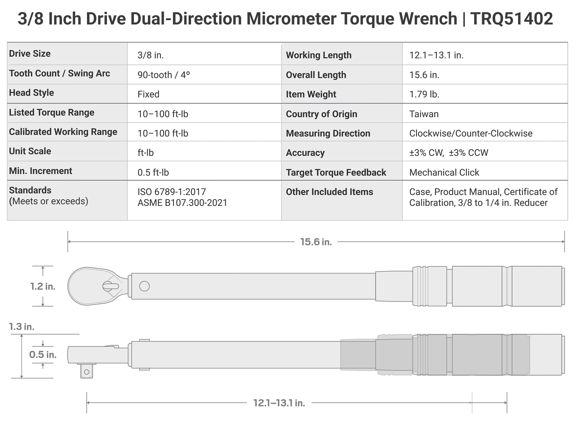 • Full-Range Calibration Using the ISO Standard – Since this torque wrench is calibrated to the ISO standard, it also meets and exceeds the ASME standard