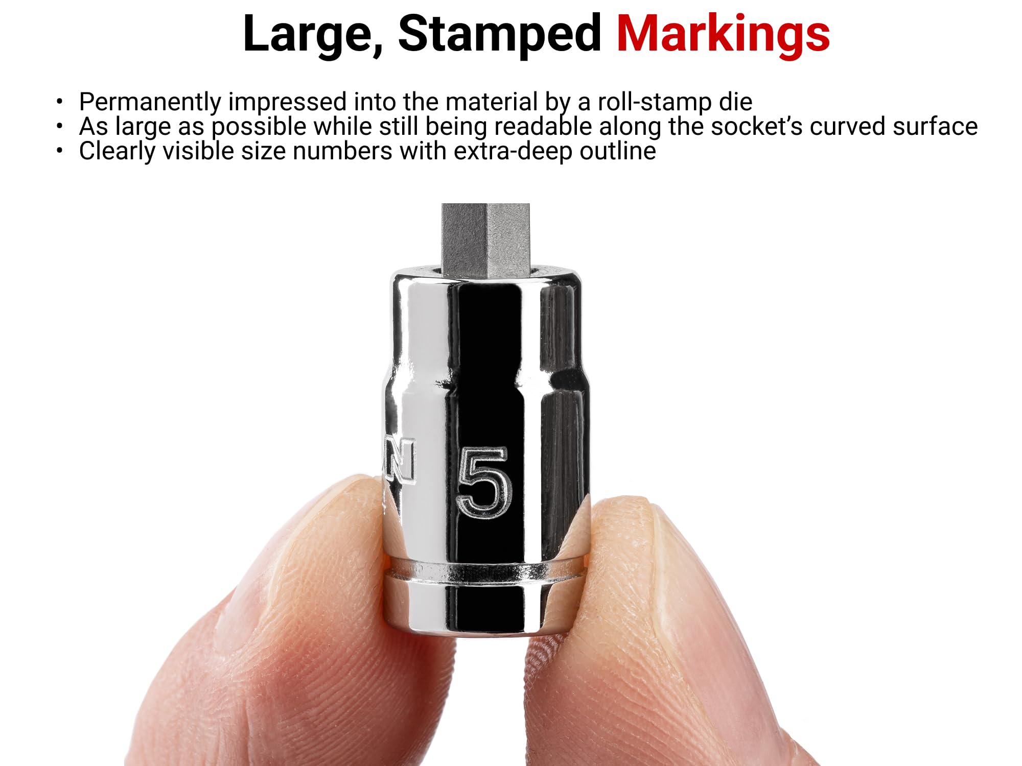 - Beveled inner rim of the socket opening helps guide it smoothly onto fasteners