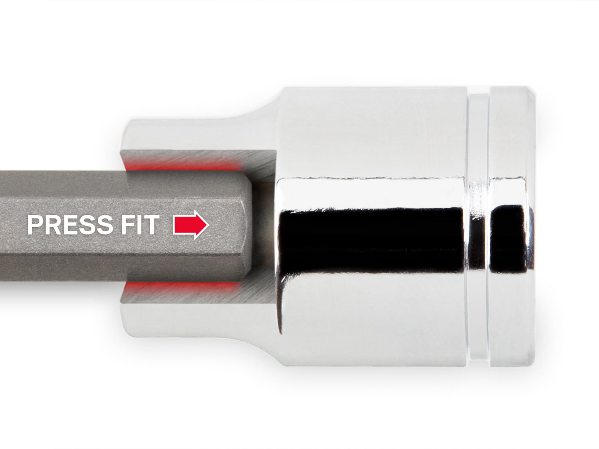 - S2 steel bit is press-fit into the socket for a straight, permanent connection that can’t loosen over time