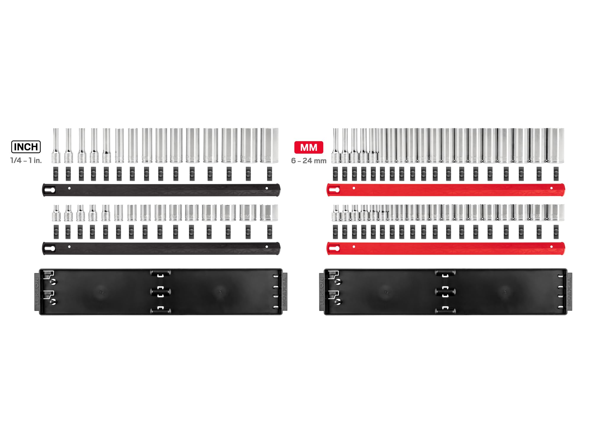 TEKTON 3/8 Inch Drive Shallow and Deep 12-Point Socket Set with Rails and Trays, 68-Piece (1/4-1 in., 6-24 mm) | SHD91221