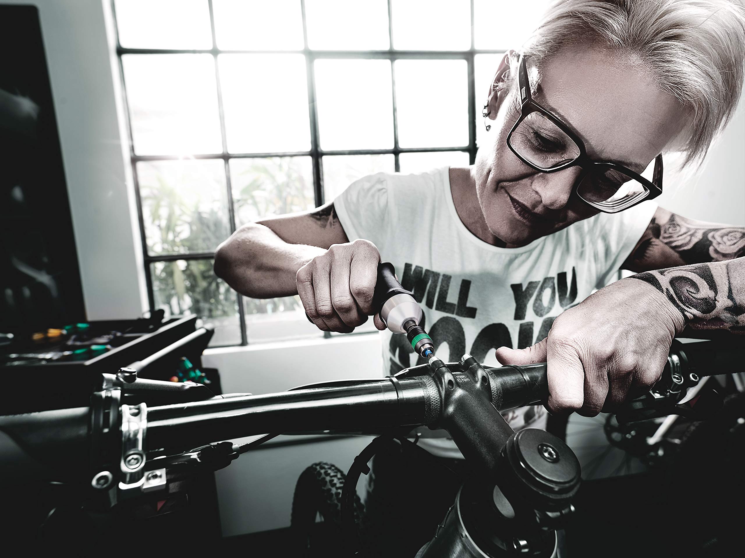 Wera Kraftform 27 Piece Adjustable Torque Screwdriver set is designed for torque controlled tightening to guarantee the safety of the screw connection. Torque can easily be set to the required scale value by hand without special tools. Measurement accuracy is +/- 6% in accordance with standard EN ISO 6789. Wera torque tools have unlimited loosening torque to loosen seized screws. All Wera hand tools feature the trademarked ergonomic Kraftform handle, with hard and soft zones, that fits the shape to the hand for the ultimate in comfort and high-speed torque transfer. Adjustable torque screwdrivers feature the Rapidaptor bitholder with quick-release chuck that allows for speedy one-handed bit insertion and removal for insert and power bits. Calibration certificate included. Limited Life Time Warranty. Set contains 1 x 7400 Adjustable Torque screwdriver with Rapidaptor, range 0.3-1.2 Nm, 1 x 7441 Adjustable Torque Screwdriver with Rapidaptor, range 1.2-3.0 Nm, 1 x 7442 Pistol Handle Adjustable Torque Screwdriver with Rapidaptor, range 3.0-6.0 Nm and 24 carbide insert bits, 6 Hex bits– 2mm, 2.5mm, 3mm, 4mm, 5mm, 6mm; 9 Torsion (TZ) TORX bits – TX6, TX7, TX8, TX9, TX10, TX15, TX20, TX25, TX30; 9 TORX PLUS bits – 6 IP, 7 IP, 8 IP, 9 IP, 10 IP, 15 IP, 20 IP, 25 IP, 30 IP. Includes durable storage case with molded insert. Wera – The Best Tools For The Job